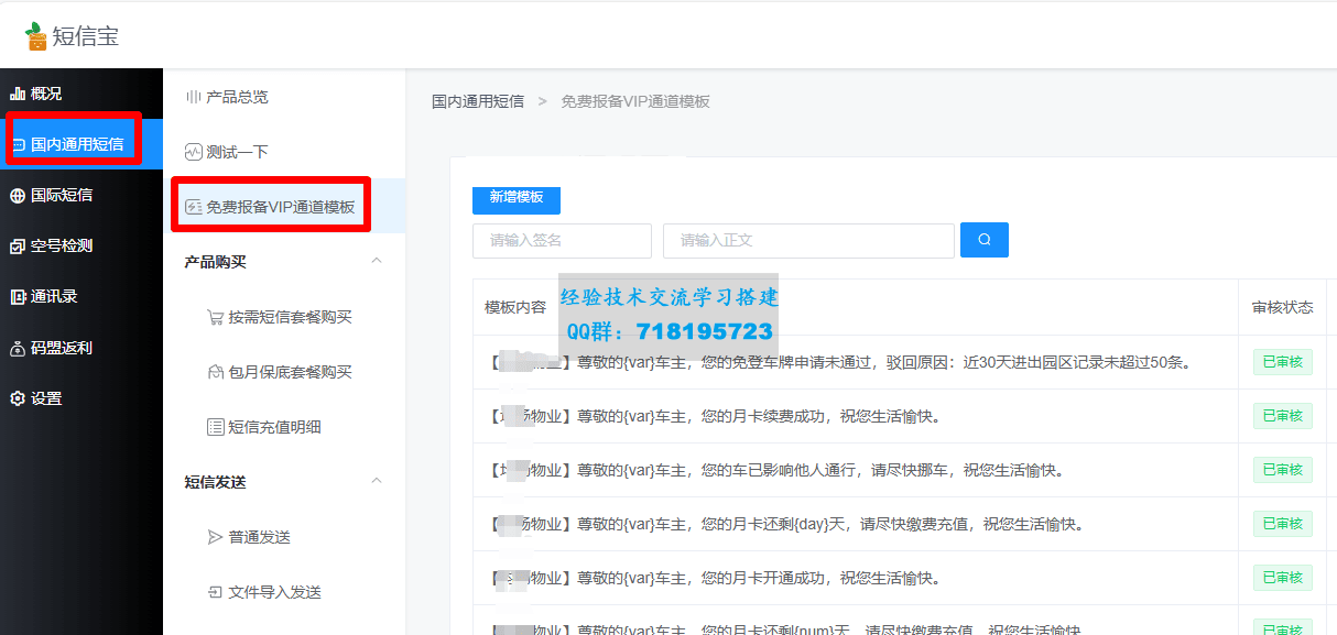 2.短信模板报备(需提前到短信宝VIP报备)